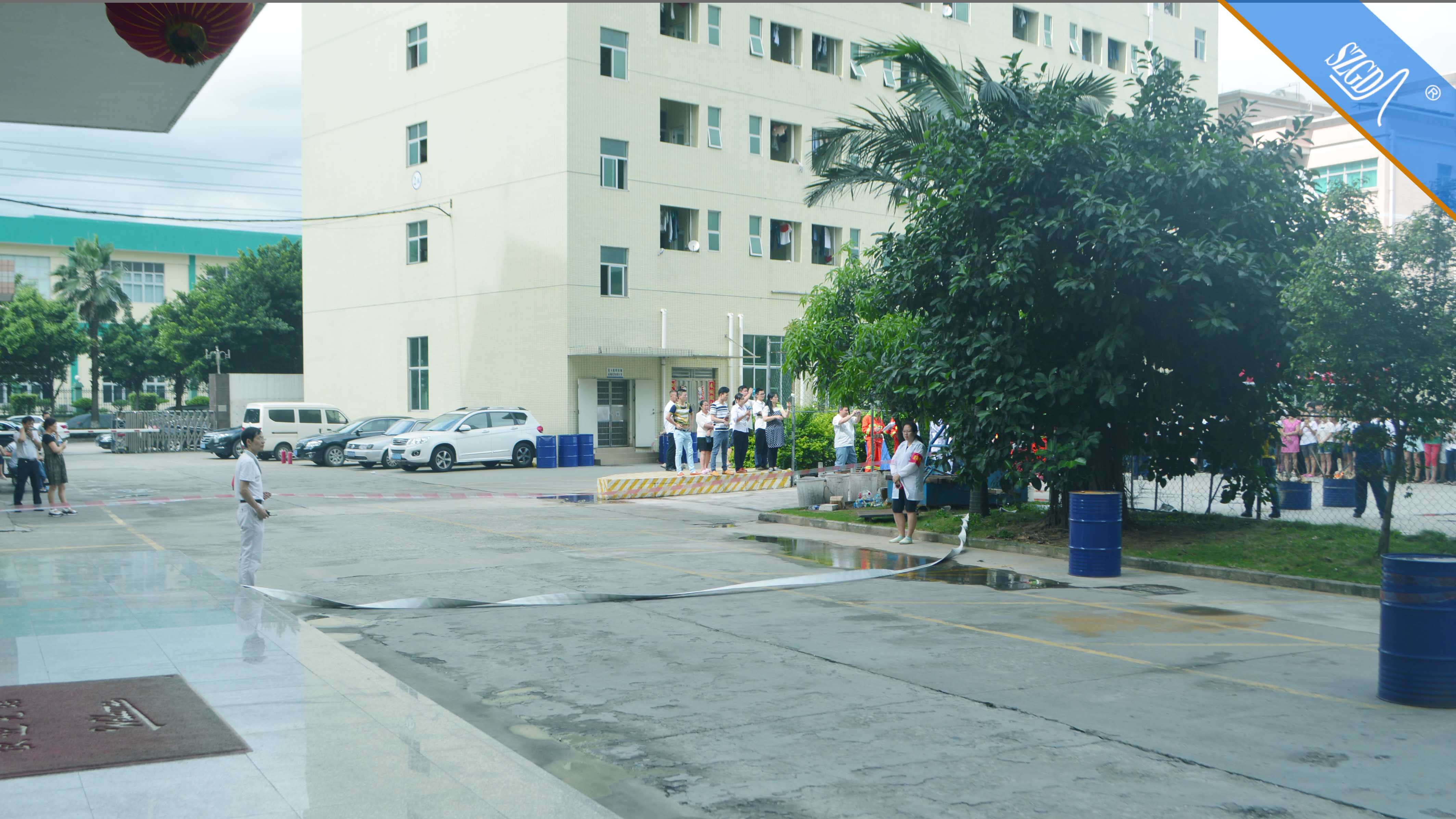 现在是北京时间下午 3 点20分,模拟事故地点为松岗江边固电工业园,由于电气线路短路引发火灾,并引燃了附近的杂物和可燃物。现场员工发现火情后,积极开展自救灭火,同时报告相关负责人。