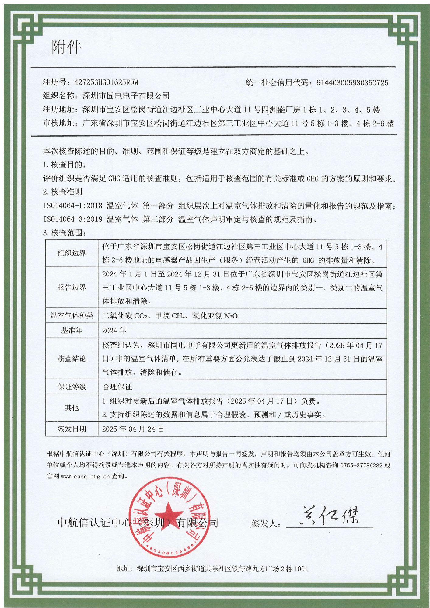 14064-温室气体核查声明证书